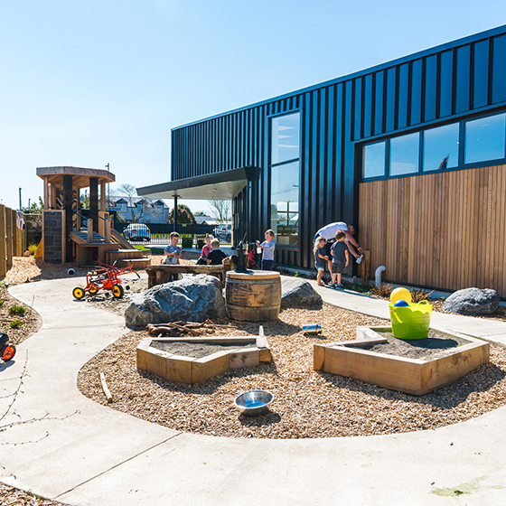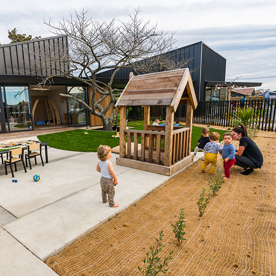 Halswell Quarry Preschool and Play’n’Learn partnered to design and deliver a sensory-rich home-away-from-home, designed with the elements of what makes growing up in New Zealand special.