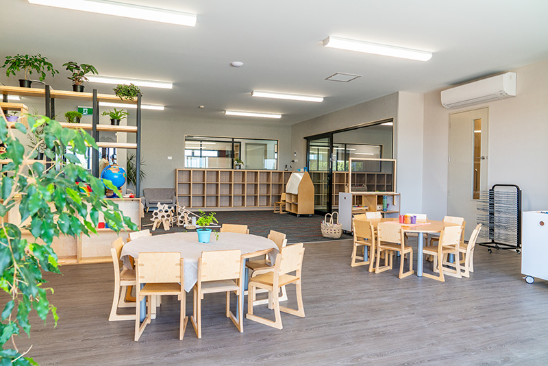 The aesthetic of the centre is modern, with clean-lined Scandinavian inspired furniture providing calming, homelike learning areas. Of particular note are the many ‘retreat’ spaces, or opportunities for toddlers and preschoolers to have quiet spots if they are feeling overwhelmed.